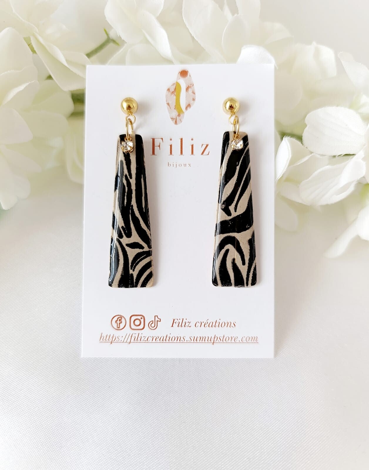 Les boucles Savane dune – Élance capturent la beauté instinctive du mouvement et la force tranquille du regard. Sculptées à la main en pâte polymère, elles unissent la chaleur du sable à la profondeur du noir, dans une harmonie de matières à la fois brute et précieuse.